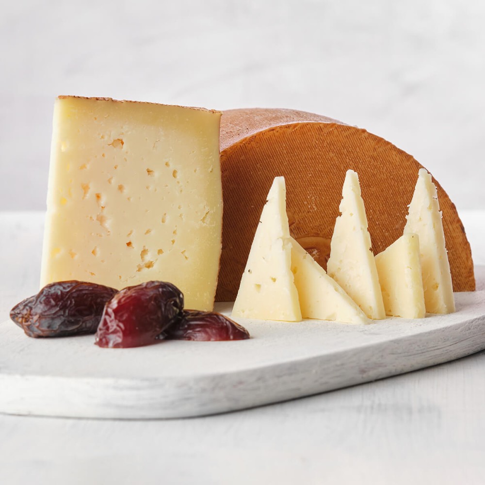 Queso de pasta prensada, elaborado con leche cruda de oveja local. Madurado de 4 a 6 meses para todas los formatos, excepto piezas 2,7 kg. cuya maduración es de de 10 a 12 meses. Coagulación enzimática.