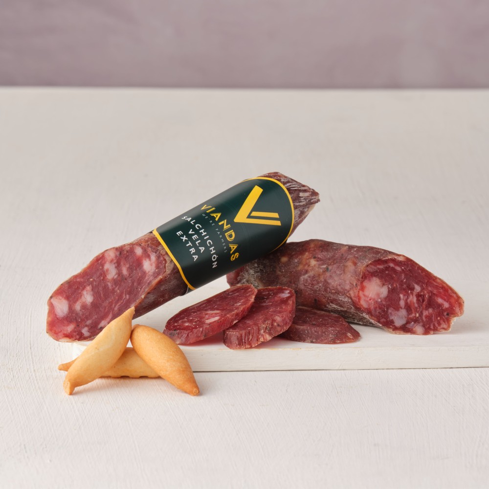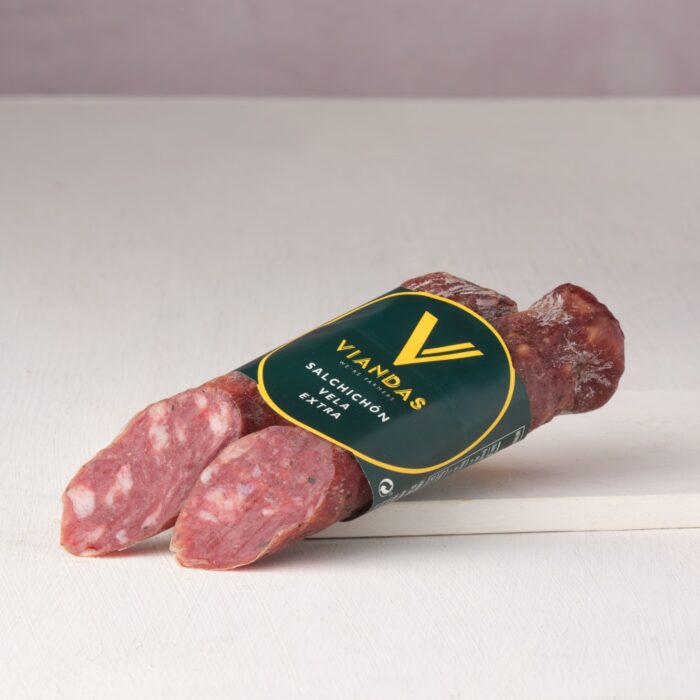Vela blanca de Viandas, una alternativa perfecta al tradicional salchichón. Formato 350 gramos de peso.