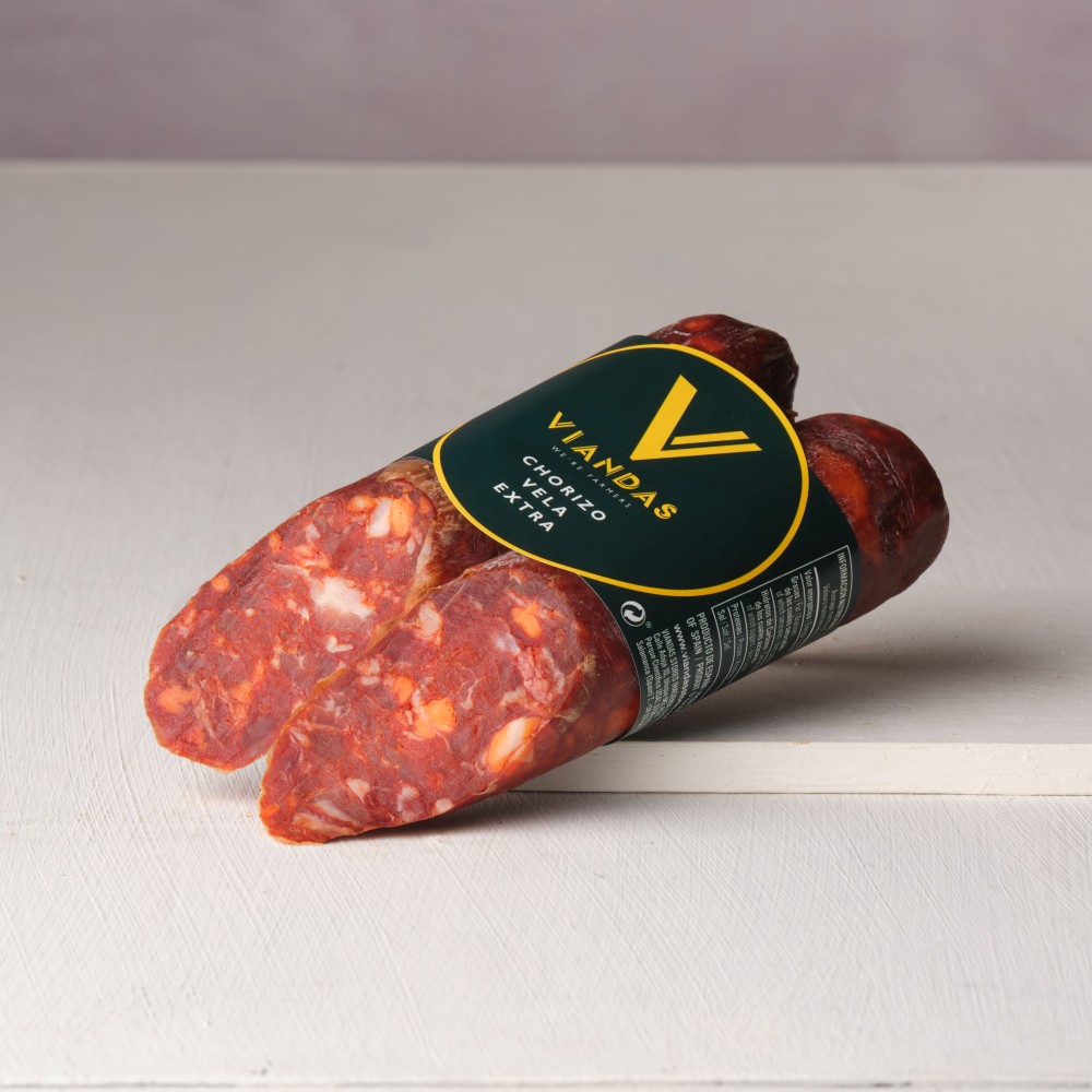 Vela de Viandas de la Dehesa de Salamanca, una exquisita versión del chorizo español. Peso aproximado: 350 g